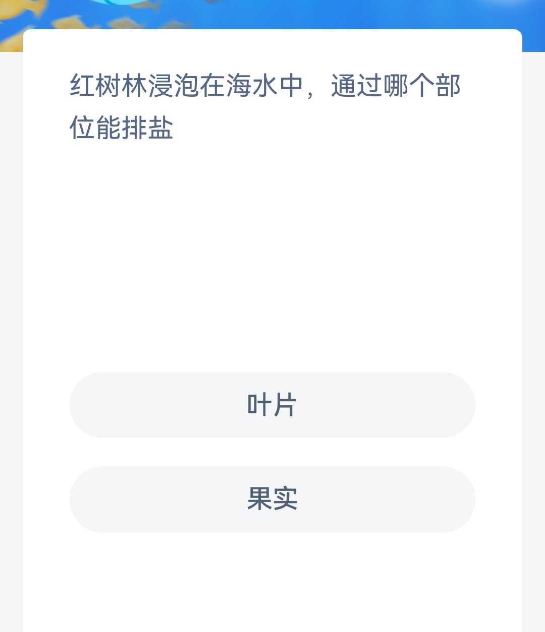 红树林浸泡在海水中,通过哪个部位能排盐?这是神奇海洋今日答案11.12的问题,答对即可获得拼图作为奖励,那么到底红树林浸泡在海水中通过哪个部位排盐呢?接下来就让我们一起了解一下吧。