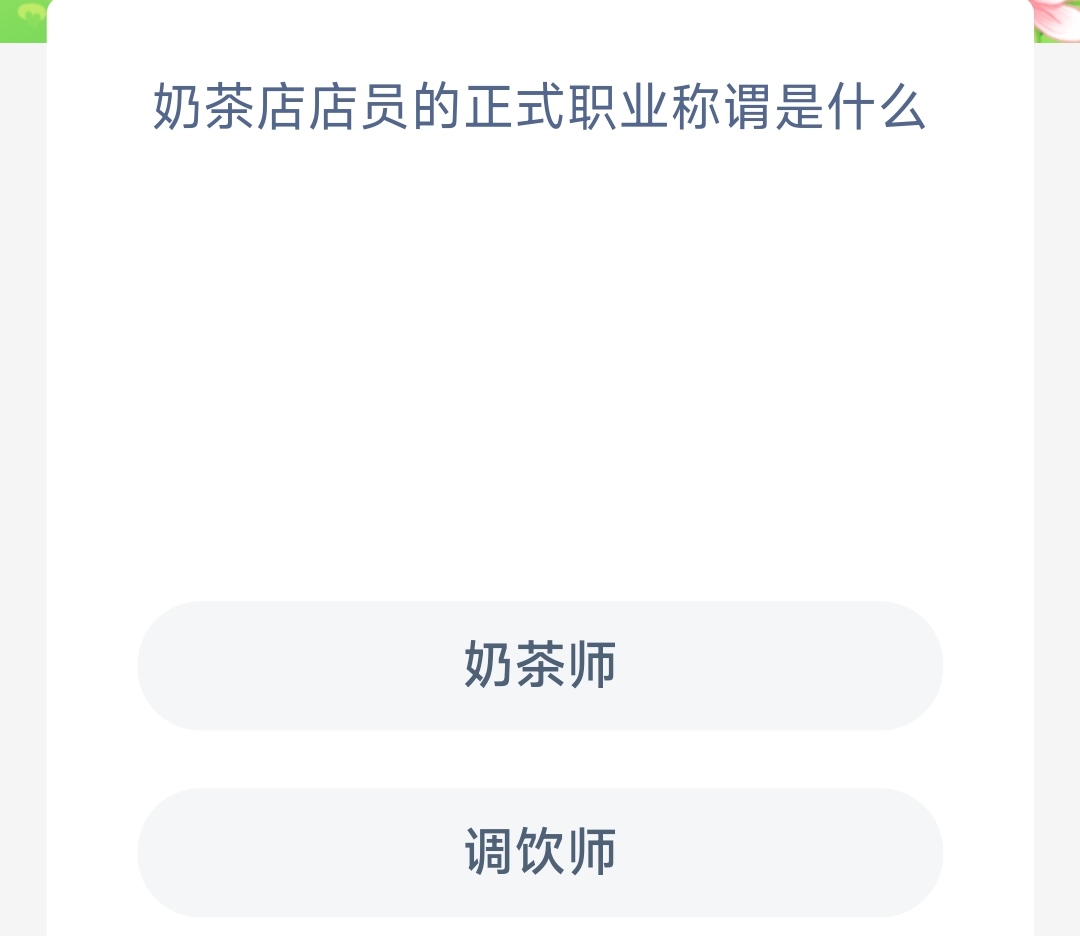蚂蚁新村奶茶店店员的正式职业称谓是什么?这是蚂蚁新村木兰职业小课堂3月17日的问题,答对即可获得3个村民作为奖励,那么接下来就让我们一起了解一下奶茶店店员的正式职业称谓是奶茶师还是调饮师吧。