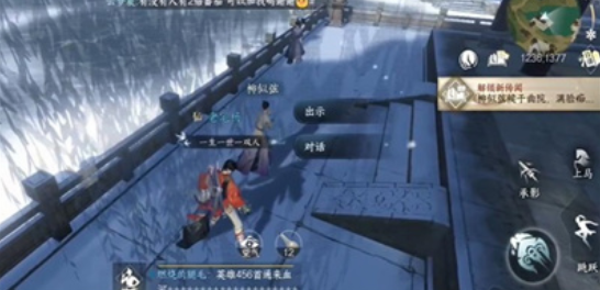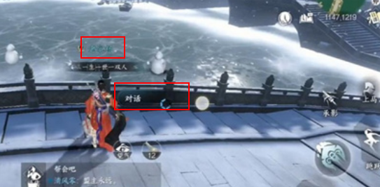3.然后小伙伴们来到桥上和任务的重要任务【雪姑娘】进行对话。