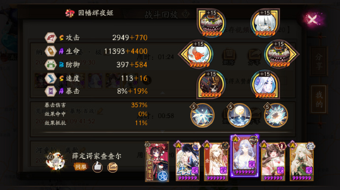 三速季 隐伎 攻攻爆,指标输出(参考非下限:9957攻、290爆,新评分:2.39w)