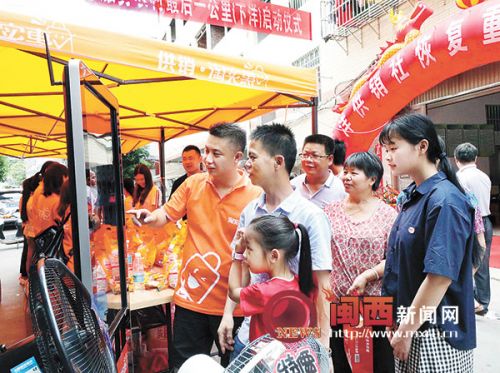 3日,永定区下洋镇开展服务农村“最后一公里”活动,举行下洋镇供销社重建揭牌仪式。永定供销部门用好用活乡镇供销社为农服务基层组织体系,6月中旬以来,已设立17个农村电商平台乡镇一级服务点,加强农村的三农服务,预计10月将增至200个服务点。图为在这个活动中,群众选择来自于供销·淘实惠提供的特价商品。(记者 王耀辉 摄)