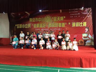 在征文评选的基础上,市教育局、教育系统关工委于6月2日上午在国专中心小学举行“蓝天杯”“五好小公民‘老师您好 我的好老师’”主题演讲比赛。有18位选手参加比赛,蓝园高中、实验中学、石井中心小学、仑苍中心小学选手分别获得中学组、小学组一等奖,将代表我市参加篮球比分直播:市比赛。市教育局党组副书记、教育系统书记、教育系统关工委主任田空军,市政府副科级教育督导员、教育系统关工委副主任王燕华,市关工委副主任、教育系统关工委常务副主任洪维从,市教师进修学校正科级干部、教育系统关工委副主任兼秘书长黄侨明,教育系统关工委有关成员、国专中心小学部分师生参加了活动。