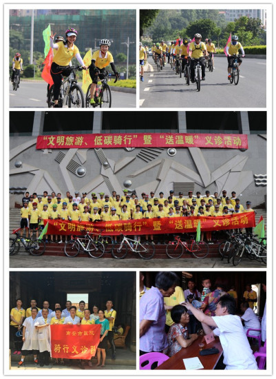 来自南安市乐骑单车俱乐部和东田逆风骑行俱乐部的60多名自行车爱好者参加了本次活动。自行车爱好者们身着印着“海丝南安,快乐骑行”logo的统一服装,自行车上悬挂“游成功故里,品海丝风情”“低碳出行,文明旅游”等宣传标语的彩旗,在简短的启动仪式后,9点左右从南安市体育馆出发,途经二环路、南官公路、国家传统村落官桥漳里村漳州寮自然村,10点左右到达蔡氏古民居建筑群。稍做休息后,骑行爱好者中的10多名南安市医院医务人员在古民居里开展义诊活动,现场设有儿科、外科、皮肤科、内科、眼科、量血压等服务,当地村民闻讯前往就医问诊。而另一批骑行爱好者,则到一片寺开展低碳骑游挑战线路骑行比赛。以骑行和义诊的方式,将“爱旅游、爱生活、爱生命、爱南安”表现得淋漓尽致。