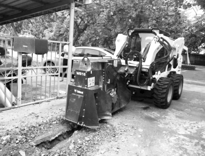 “现在设备前臂上装的是轮盘锯附件。”设备生厂方总经理陈闽湘告诉记者,在一般道路上,轮盘锯不到15分钟就可以在混凝土路面整齐地切割出一道深50厘米的沟槽。
