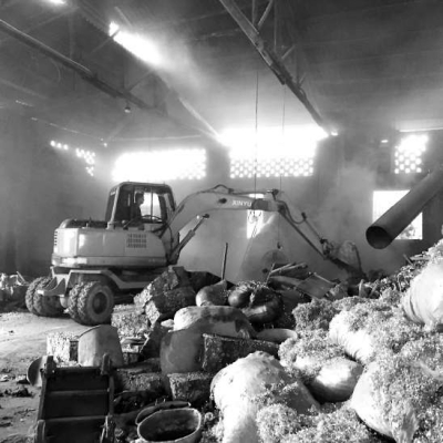 “今年4月我们接到群众举报,发现了这家土法炼铝厂,5月份发停电通知、采取停电措施,今天主要是取缔拆除,避免死灰复燃现象。”省新镇环保站工作人员介绍,该厂多年前在美林街道生产,被取缔后将工厂偷偷搬到了省新,占地约2666.7平方米,专门利用土制地炉进行废旧铝合金材料重新炼制铝锭,并进行销售。