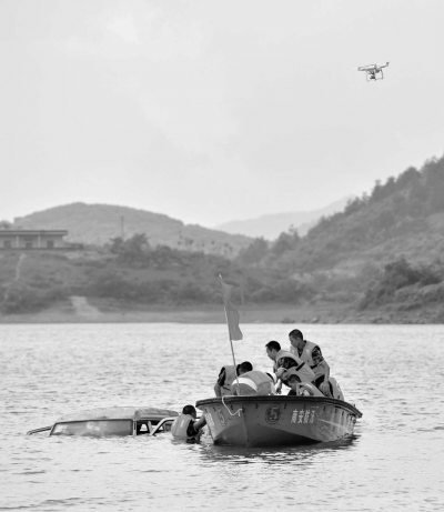 据了解,此次演练力求逼真,落水车辆等均是实物演示。