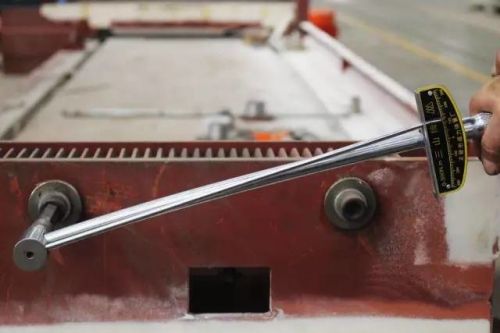 师傅正在用扭力扳手在拧紧每一颗螺丝