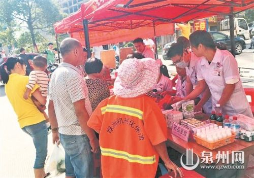▲近日,为做好卫生防疫工作,南安市开展送医送药义诊活动,免费为“莫兰蒂”台风受灾群众和市民提供医疗服务。图为霞美镇义诊活动现场。 (傅成顺 摄)