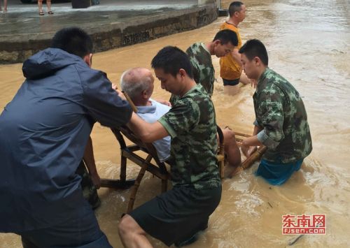 29日上午9点左右,南安市省新镇南金村积水严重,南安消防大队美林中队赶赴现场疏散被困群众3人,其中一名90余岁高龄的老人行动不便,消防官兵利用摇椅将其抬离到安全地带。
