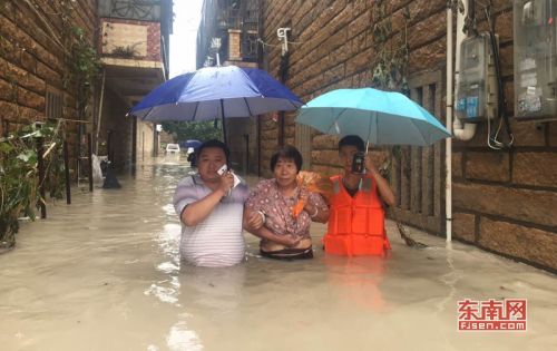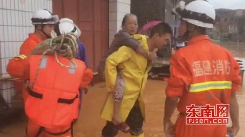 29日上午9点20分,南安榕桥下都村积水较为严重,一名90多岁独居老人家中被淹,消防官兵到场,将老人转移到地势较高的村民家中。