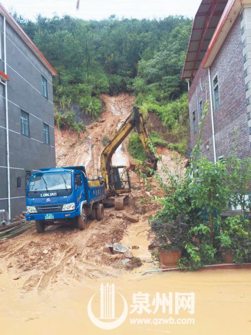 昨日上午11时许,南安码头镇最偏远的行政村码四村七组一民房后发生溜坡,进村唯一村道出现20多处溜坡塌方,近200米长的路段被金格水库溢洪淹没。接报后,码头镇防汛指挥长、镇长洪贵生要求村干部立即转移村民,并徒步涉水进山赶赴现场指挥救援,该户村民安全转移。
