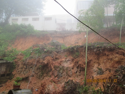 据了解,受17号台风“鲇鱼”带来的强降雨影响,蓬岛校区学生宿舍楼、厕所外围护坡出现大约长40米,500方以上的严重的溜方,大量的泥土直接危害到校外民房及群众安全,学校宿舍楼、厕所的地基也受到严重的威胁,存在严重的安全隐患。灾情发生后,学校及时启动应急预案,第一时间将灾情上报相关部门,及时配合镇村疏散群众,采取疏、导、引方式,加强值班巡查,设立警示标志,尽力将损失降到最低。