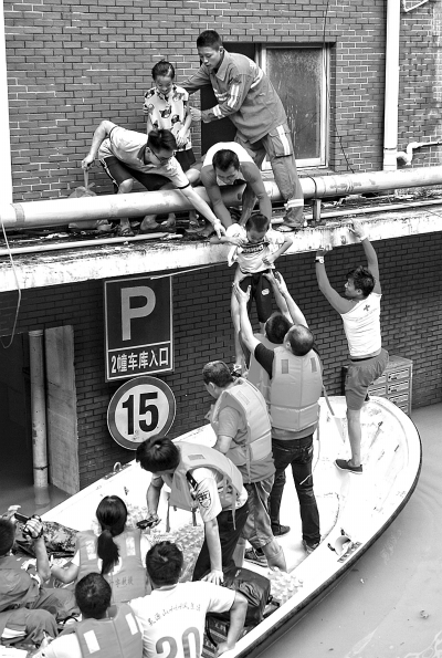 水头镇上林村大半个村子被淹,独居老人被困家中,万分紧急。暴雨中,积水越来越深,10多名村民、志愿者主动参与救援,分成3组淌着1米多高的水,手推橡皮艇、冲锋舟,在狭窄弯曲的村道中艰难前进,解救出一个个独居老人。