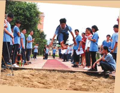 在这次破学校纪录中,初二(2)班的叶凤彬可谓是跳远健将,本身拥有先天性运动细胞的她,通过后天的练习,拥有极强的爆发力。在去年南安市中小学生运动会中,她的跳远成绩突出,夺得第一名,参加篮球比分直播:市中小学生比赛跳远成绩获得第3名。