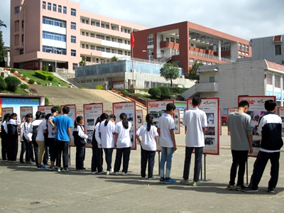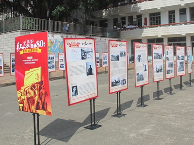 报告会结束后,同学们参观了“纪念红军长征胜利80周年”爱国主义教育图片展,图片展图文并茂地展示了叶飞将军光辉的一生,为同学们上了一堂生动的革命传统教育课。