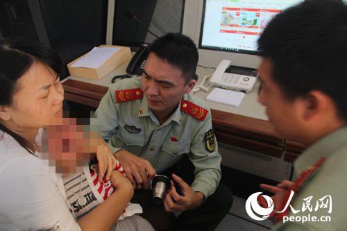 10月31日10时20分,一对夫妻抱着一名1岁左右的男婴来到南安美林消防中队求助。原来是男婴的左手大拇指被地漏内芯死死“咬住”, 男婴的父母急得不知所措。