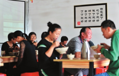 吃完后,记者正准备抹嘴走人,却被提醒,要倒碗“惜福水”就着碗里剩下的汤汁一起喝下,寓意“节俭,不浪费一丝一毫”。之后,将碗筷放到规定位置。