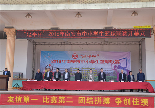 12月2日至6日,由南安市教育局、南安市文体新局主办,石井镇人民政府、南安市延平中学承办,延平中学董事会、南安市郑成功庙管委会和石井社区居委会提供赞助的“延平杯”2016年南安市中小学生篮球联赛在南安市延平中学举行,南安市人民政府副市长王昭昭,市教育局党组书记、局长黄海鹰,市教育局副局长李仁杰,石井镇镇长黄育奇、副镇长洪江澄等领导和延平中学校董会、南安郑成功庙管委会和石井社区居委会等赞助单位代表出席开幕式。
