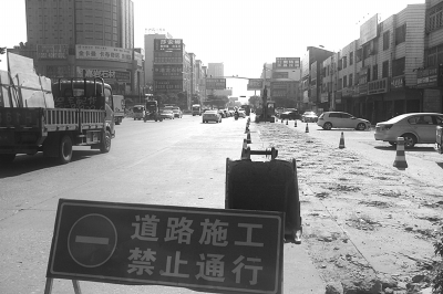昨日,记者在明利酒店红绿灯路口看见,工人和机械已进场施工,正对路沿石进行拆除。