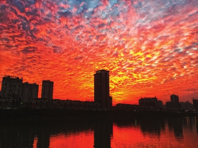 “赶紧看看天空,太美了!”昨天下午,南安整个天空被晚霞映得通红,云朵呈“鱼鳞”状密集地铺满天空,不少市民的微信朋友圈被该美景刷屏了。