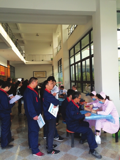 蔡建华说,从事石材机械生产的员工,大多是从中专、大专等技校毕业的,管理层不乏本科毕业生。员工整体素质较高,自身对于体检也颇为重视,一通知体检,次日大伙早上8时之前便准时都来到大楼集中。近百名员工,花了不过两个半小时,就完成所有体检项目。