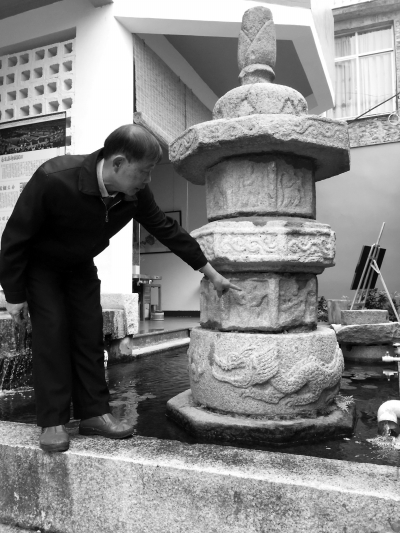 “懂行的人一看,就知道其中的价值了。”胡家其说,根据考察推测,经幢大约是唐宋时期的,应是延福寺内所有,后来散落到附近村民家中。1992年,胡家其意外发现其中一块,大为惊喜,于是走遍周边村落,将其余的石块都收集到一起并拼接起来。遗憾的是,底座已经找不到了,胡家其只能拿延福寺内的一块石柱底座替代。