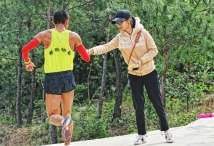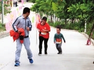 20分钟后,从森林山庄绕了一圈的他,又出现在大家面前,这次他跑一会就改为走路,最后停了下来。身后一名男子停下脚步,蹲下身来,小孩子欢快地爬上他的背,由男子背着,向2公里外的终点走去。