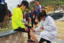 “副院长李永辉带领两位医生、两名护士,分布在中途和终点,随时准备做好医疗救护工作。”他说,医院还派一辆急救车随时待命,车上配备了充足的医疗设备和药品。“大部分需要医护的运动员均是因脚崴、肌肉酸痛等,经医生护士第一时间处理后,选手均很快回到赛道中,比赛无突发情况。”