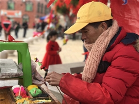 “首届永宁古卫城元宵民俗文化庙会”,于2月10日上午正式开锣(农历正月十四)举行。2月10日,记者来到活动现场,敲锣打鼓的声音响彻天际。此时现场早已被挂上了一个个红艳艳的灯笼,更有妆糕人等非物质文化手作展览。市民们成群结队在现场赏灯、拍照留影。