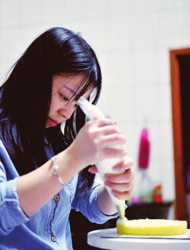 “我做个水果裸蛋糕让你品尝吧。”说罢,李香马上进入了另外一种状态,完全不受外界干扰,目光完全聚焦在蛋糕上,手上挤着奶油,小心翼翼地给蛋糕造型。蛋糕完成,记者切一块放入嘴里,细细咀嚼,口感松软,奶油甜而不腻,再配上多汁的草莓和爽滑的芒果,记者已经顾不上等待评价的姐妹俩了,只顾大快朵颐。