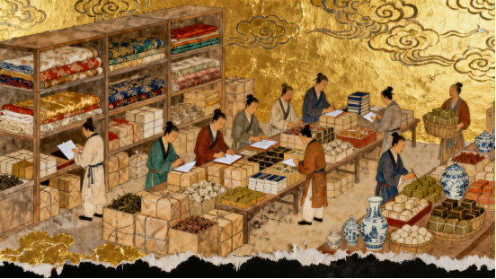 琉球使臣在清朝政府支持下置办敬奉天朝的物品。(AI制图)