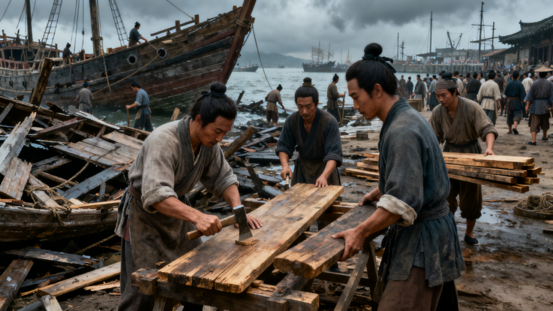 发生海难后,平潭立即组织工匠抢修船只。(AI制图)