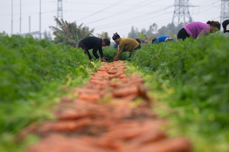 晋江东石镇农户采收国产“禧红202”胡萝卜。福建日报记者 王毅 通讯员 林晓燕 摄