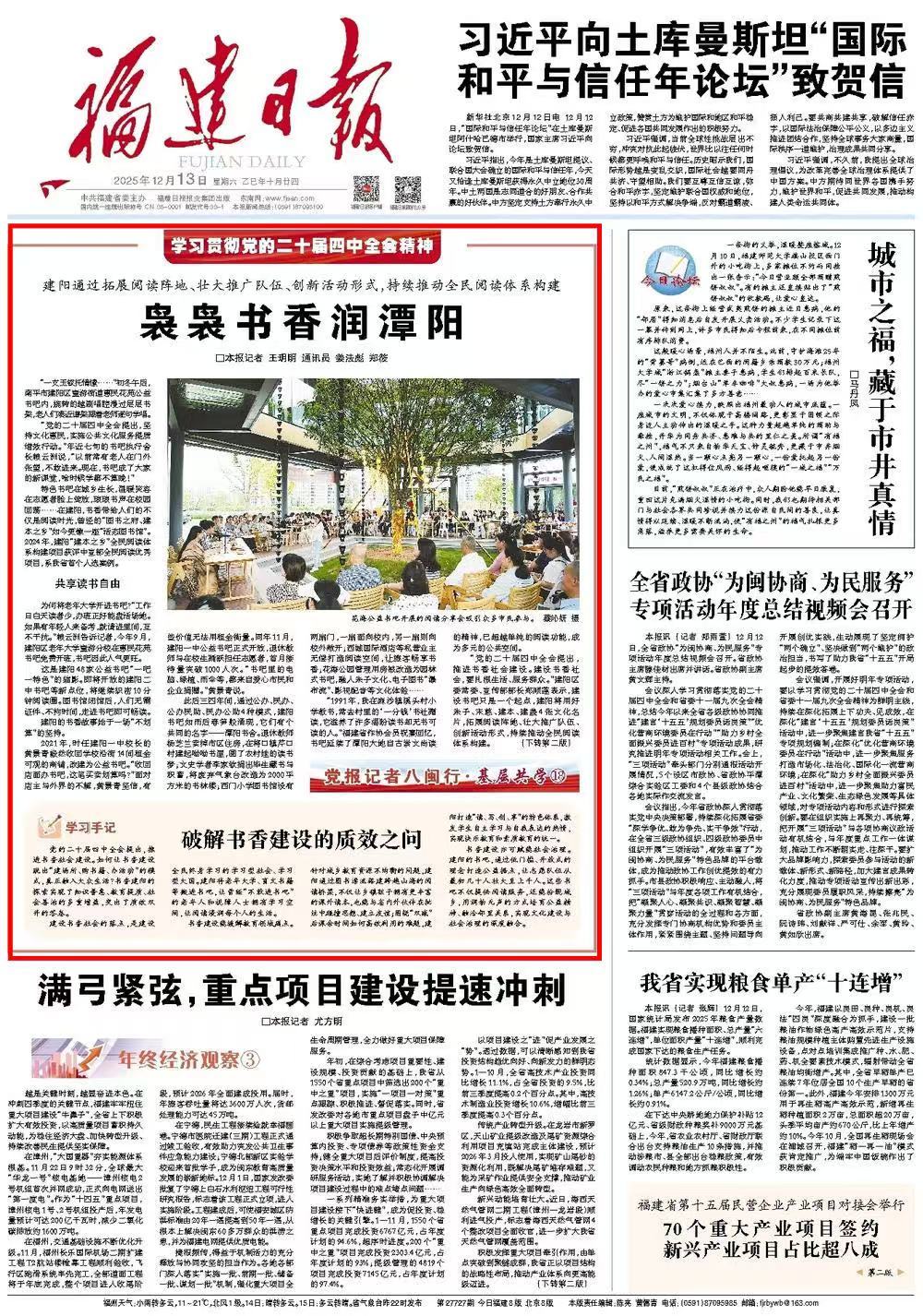 特色书吧在城乡生长,温暖笑容在志愿者脸上绽放,琅琅书声在校园回荡……在建阳,书香带给人们的不仅是阅读时光,曾经的“图书之府、建本之乡”如今更像一座“活态图书馆”。2024年,建阳“建本之乡”全民阅读体系构建项目获评中宣部全民阅读优秀项目,系我省首个入选案例。
