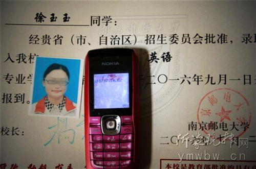 今年18岁的徐玉玉家住临沂市罗庄区高都街道,是临沂第十九中学高三应届毕业生。因为母亲残疾,父亲靠在工地打工挣钱,徐玉玉家境贫寒,生活节俭,学习也非常努力,成绩一直名列前茅。在今年的高考中,徐玉玉以568分的成绩被南京邮电大学录取,录取专业为英语,入校报到时间为9月1日。