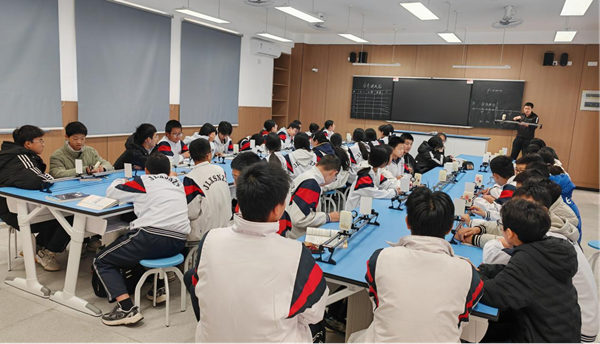 水南中学八年级的学生们在宽敞明亮的实验室里上物理课。