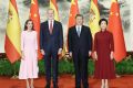2025-11-13 10:18 来源:新华社11月12日上午,国家主席习近平在北京人民大会堂会见来华进行国事访问的西班牙国王费利佩六世。这是习近平和夫人彭丽媛同费利佩六世和王后莱蒂西娅合影。新华社记...
