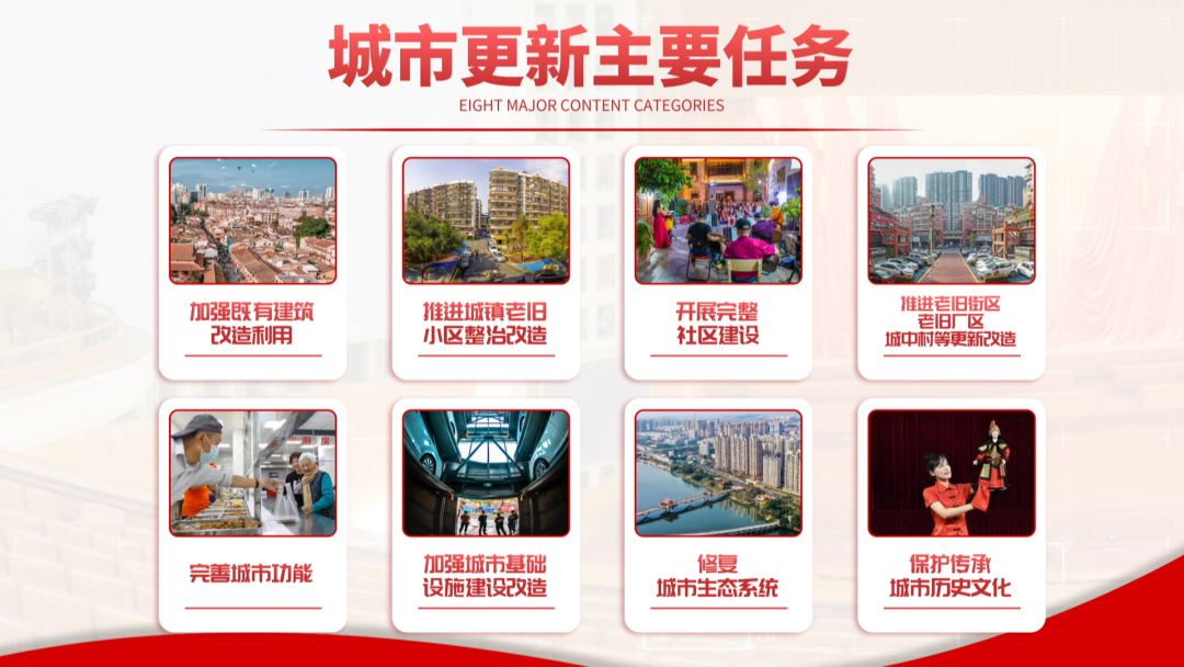 根据这一次印发的《意见》,主要涉及八个方面的内容,对应到我们芗城区,既包含民生问题,比如推进老旧小区改造,改善居民的居住环境;也包含经济问题,比如老旧街区、老旧厂区等地块更新改造;还包括各项补短板工程,比如,排水、供水等地下管线管网建设等等,这些城市更新项目,既便利了群众的生活,也促进了消费和投资,拉动了我们芗城区的经济增长。