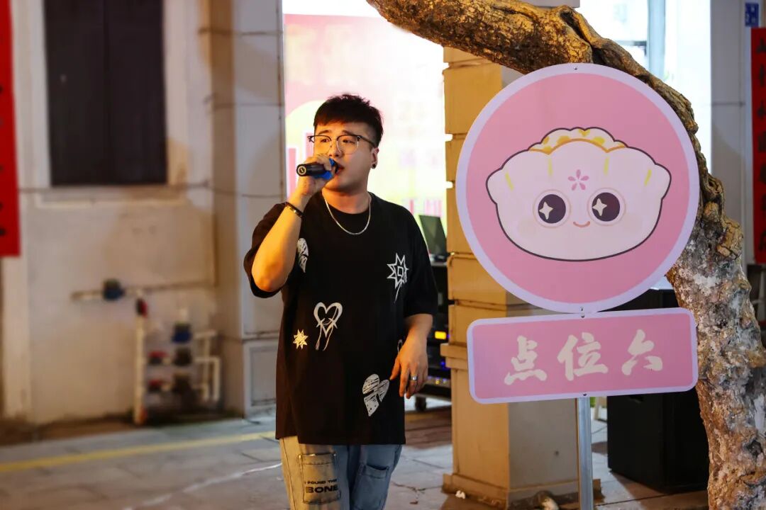 活动后半程,互动体验感持续拉满。中山路二层阳台的“天台情缘会”传来阵阵欢呼,“许愿树”下,街头音乐会已然开唱,灯笼光影透过绿叶洒在人们脸上,熟悉的旋律响起时,老少同唱的歌声漫过青石板路,与骑楼廊道里的回声交织成温暖的乐章。东关社区党群服务中心前的快闪舞蹈也骤然启动,青春身影在骑楼间跃动,最终定格的造型与身后的历史建筑相映成趣,为这场文化盛宴画上圆满句号。