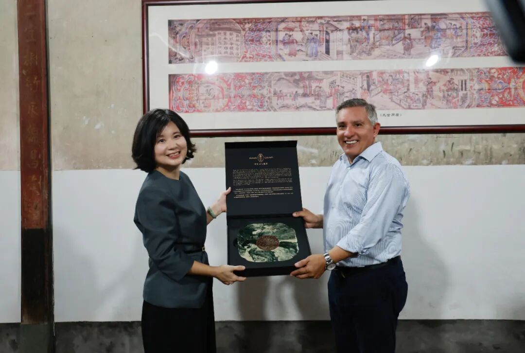 为寄托美好祝愿,我县特意准备了本地特产——华安玉(九龙璧)作为礼物赠予秘鲁友人。华安玉(九龙璧)有“十大国石候选石”“中国四大名玉”“漳州市石”的美誉,所赠的雕件雕工精湛,寓意吉祥,不仅承载着华安人民的深厚情谊,也象征着两地友谊坚贞如玉、历久弥新。