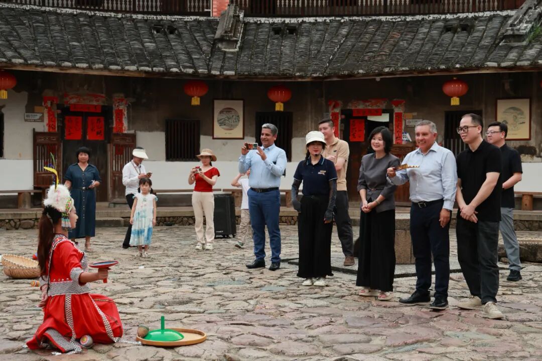 在仙都镇大地村,置身于被誉为“土楼之王”的二宜楼,外宾们为其宏大的规模、精巧的设计与深厚的人文内涵所吸引。他们细致观摩楼内建筑细节,聆听关于土楼历史与家族传统的故事,不时询问交流,对这一世界文化遗产的历史与艺术价值表示高度赞赏。