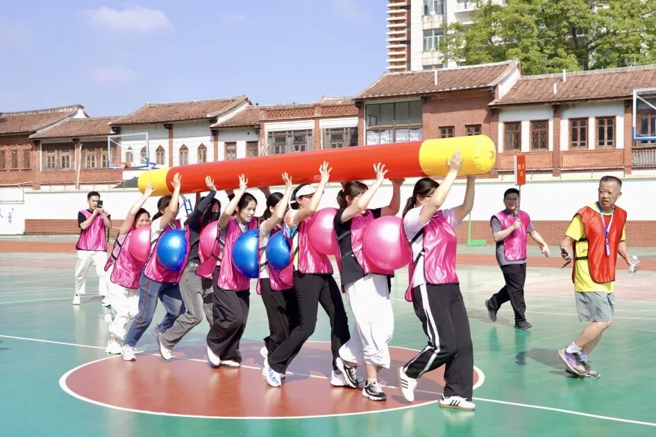 一首《勇敢的力量》激情开场,本次趣味运动会精心设置了四大特色项目,既考验团队协作,又充满趣味挑战。“无敌风火轮”中,队员们步调一致、默契配合,踩着充气履带稳步前行;“手脚并用”项目里,大家紧盯地面图案,灵活切换手脚动作,尽显敏捷身手;“砥砺奋进”与“鼓舞人心”项目则聚焦团队凝聚力,队员们心往一处想、劲往一处使,在协作中突破自我,在比拼中收获快乐。