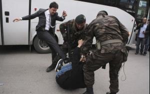 37. 土耳其总理顾问埃尔多安踢打矿难事故抗议市民现场组图