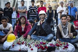 35. 土耳其示威者脸上抹灰扮矿工抗议矿难事故政府救援不尽责