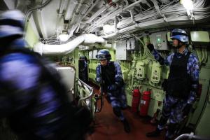 33. 中俄海军联合军演曝光 宁波舰特战队员锚地防御演练现场组图