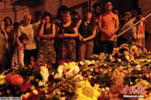 22. 乌克兰基辅民众在荷兰驻乌大使馆前献花哀悼马航MH17遇难者