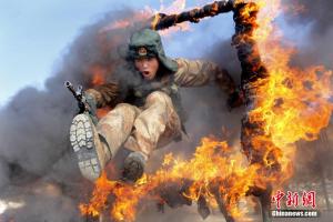 35. 黑龙江省军区边防某团官兵实战训练模拟化战场跨越火圈