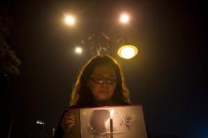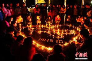 25. 湖南民众在周敦颐文化广场点蜡烛为失联航班MH370祈福组图