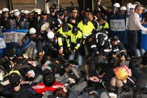 18. 台湾千名警力驱离攻占“行政院”反服贸团体推挤混乱现场