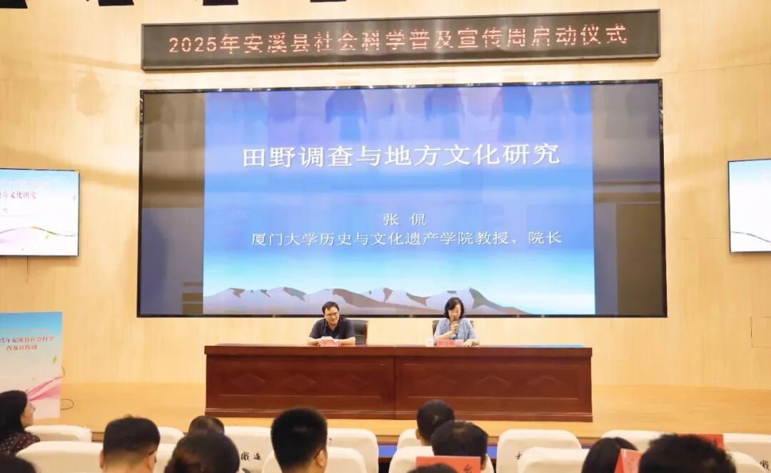 本次讲座特邀厦门大学历史与文化遗产学院院长张侃教授主讲,主题为《田野调查与地方文化研究》。讲座中,张侃教授以深厚的学术造诣和丰富的实践经验,为在场听众带来了一场高水准的社科知识分享与生动的文化实践指引。他从理论维度深刻阐释了田野调查作为地方文化研究“源头活水”的核心意义,强调扎根田野、贴近群众是挖掘地方文化精髓的关键路径;同时结合自身多年走村入户、搜集民间文献、开展实地调研的亲身案例,生动分享了田野调查的实用方法、技巧与宝贵心得,让与会人员对地方文化的价值挖掘、内涵解读与传承创新有了更深刻的认识、更开阔的思路,为今后开展安溪地方文化研究提供了极具针对性的实践指导。